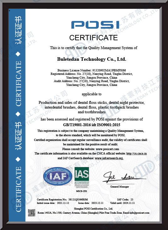 เมื่อวันที่ 1 กรกฎาคม สวนอุตสาหกรรมการดูแลช่องปากของ Buletedan Jiangsu Co., Ltd. ได้ก่อตั้งขึ้น โดยมีพิธีแหวกแนวที่จัดขึ้นในวันที่ 1 ตุลาคม ทำให้ที่นี่กลายเป็นฐานการผลิตระดับโลก